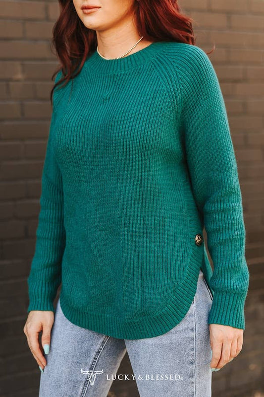 Plus Jade Knitted Round Hem Sweater Button Detail