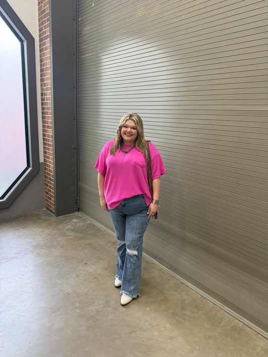 Flirty in Fuchsia Balloon-Sleeve Blouse