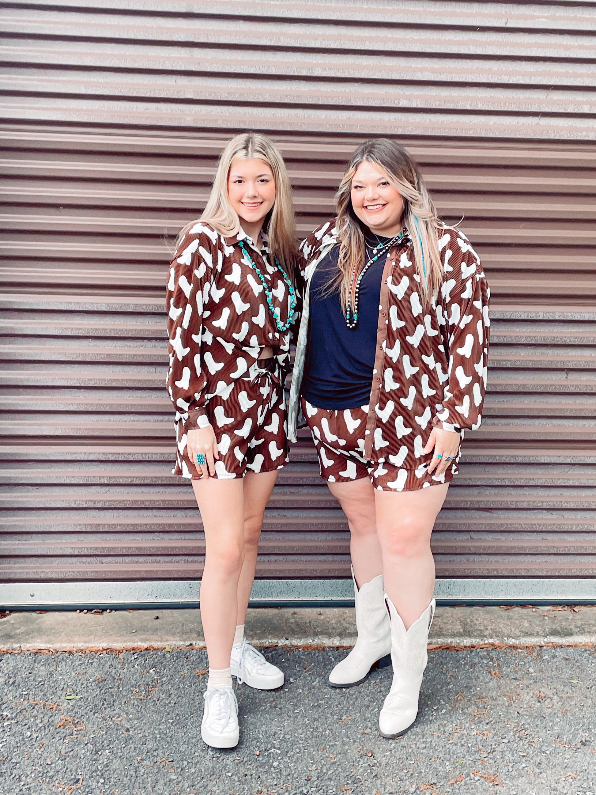 Chocolate pleated 2 piece silky short set. Sizes S-3X.