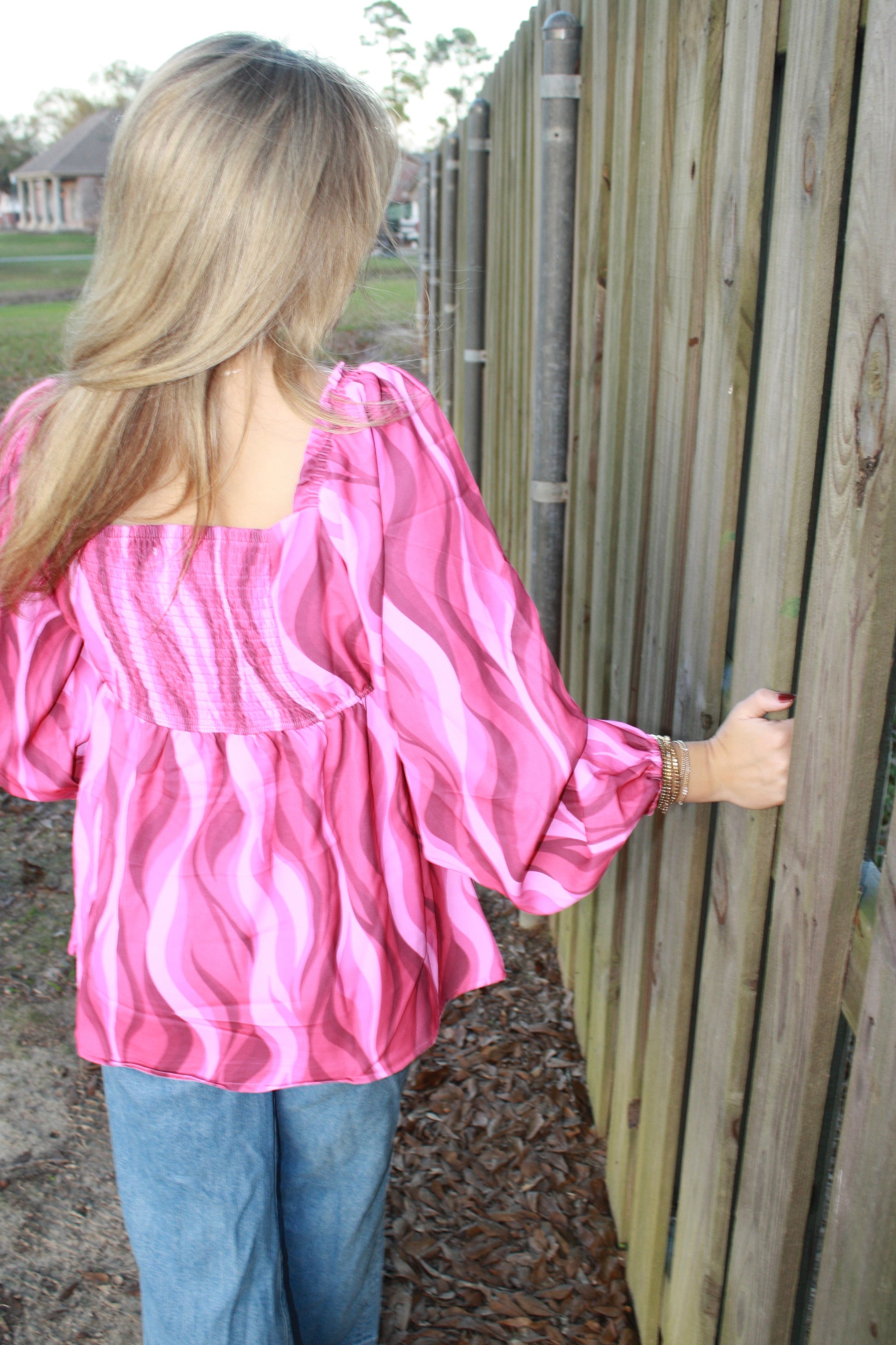 Flirty in Fuchsia Balloon-Sleeve Blouse
