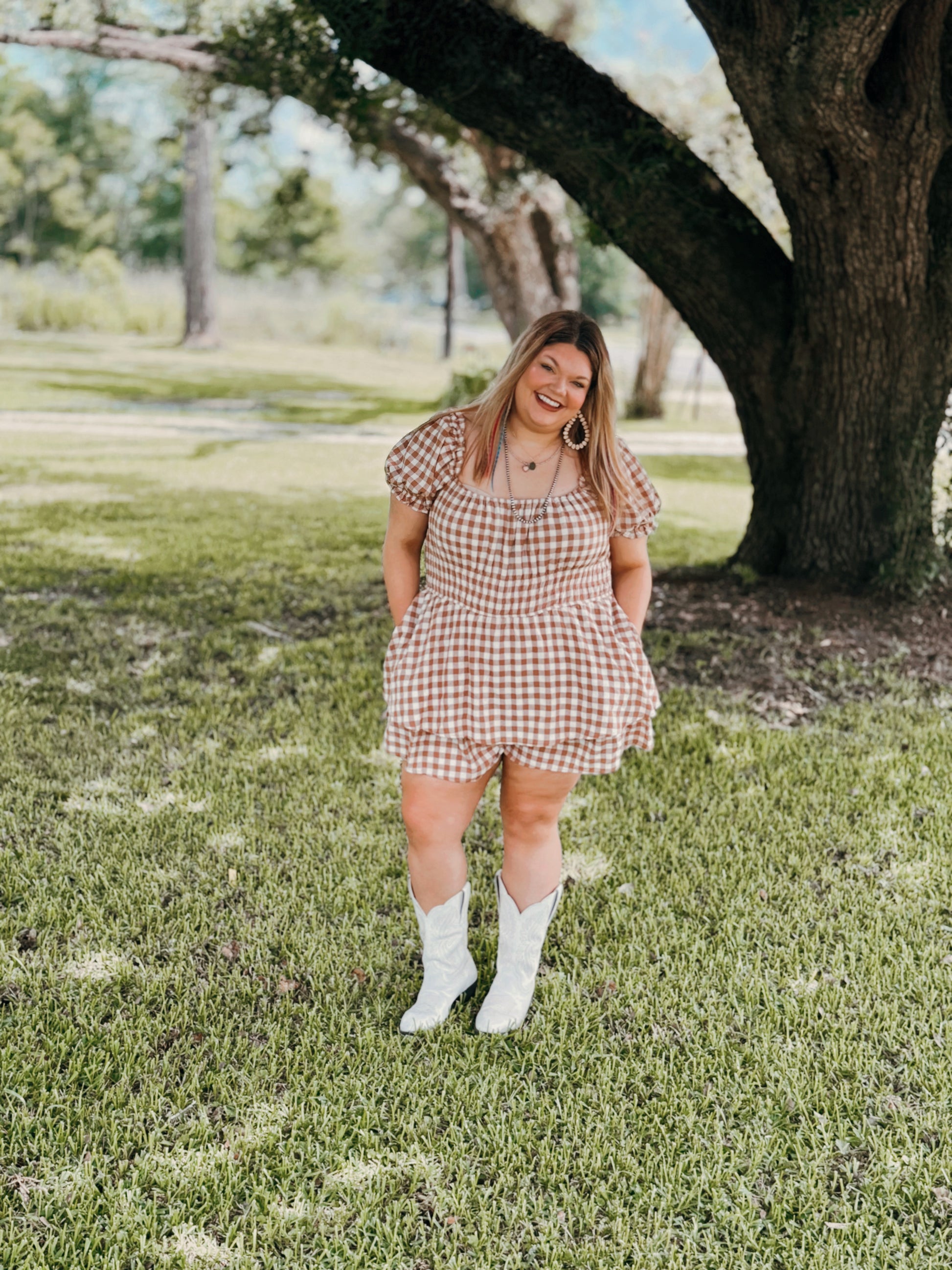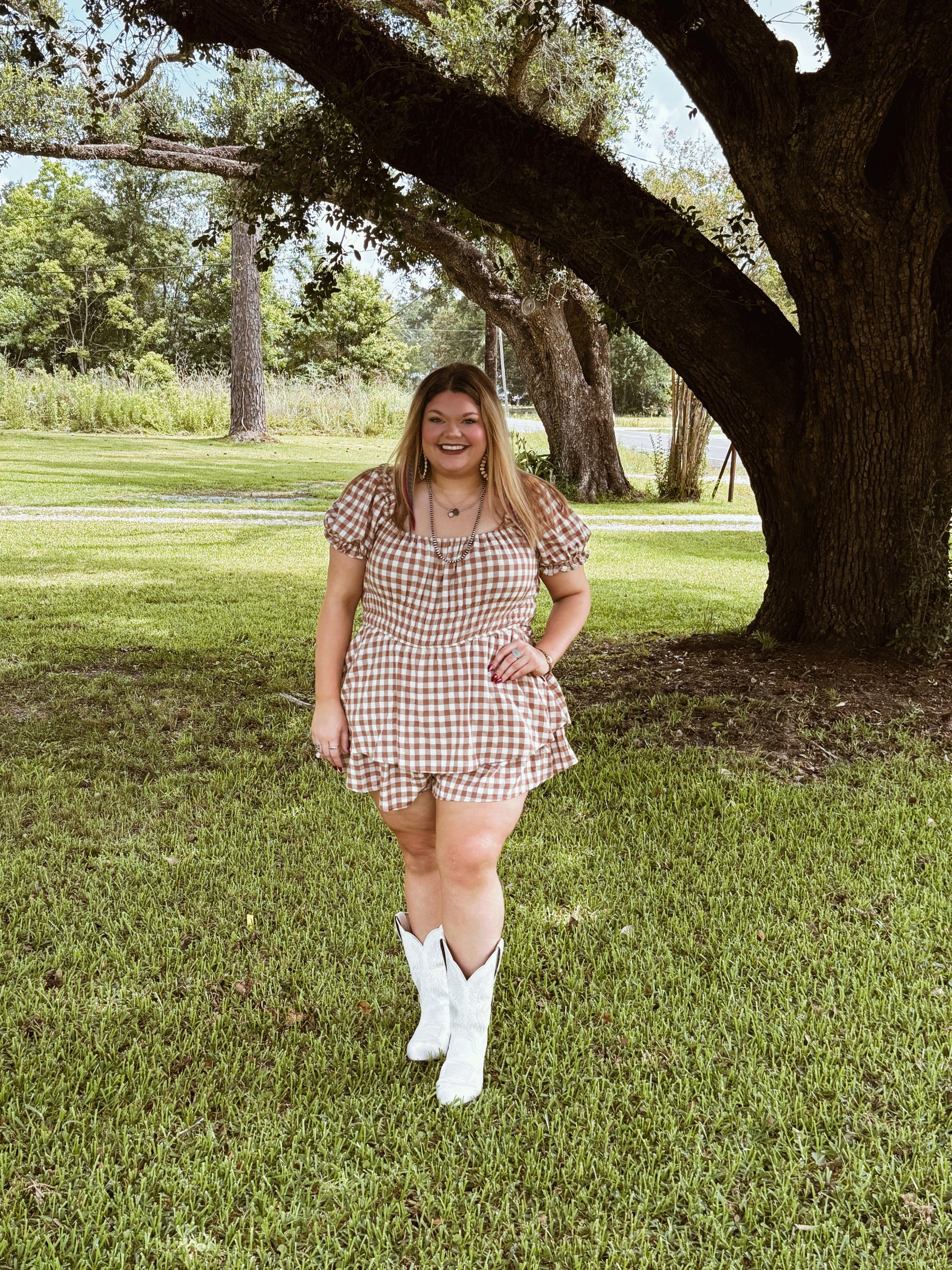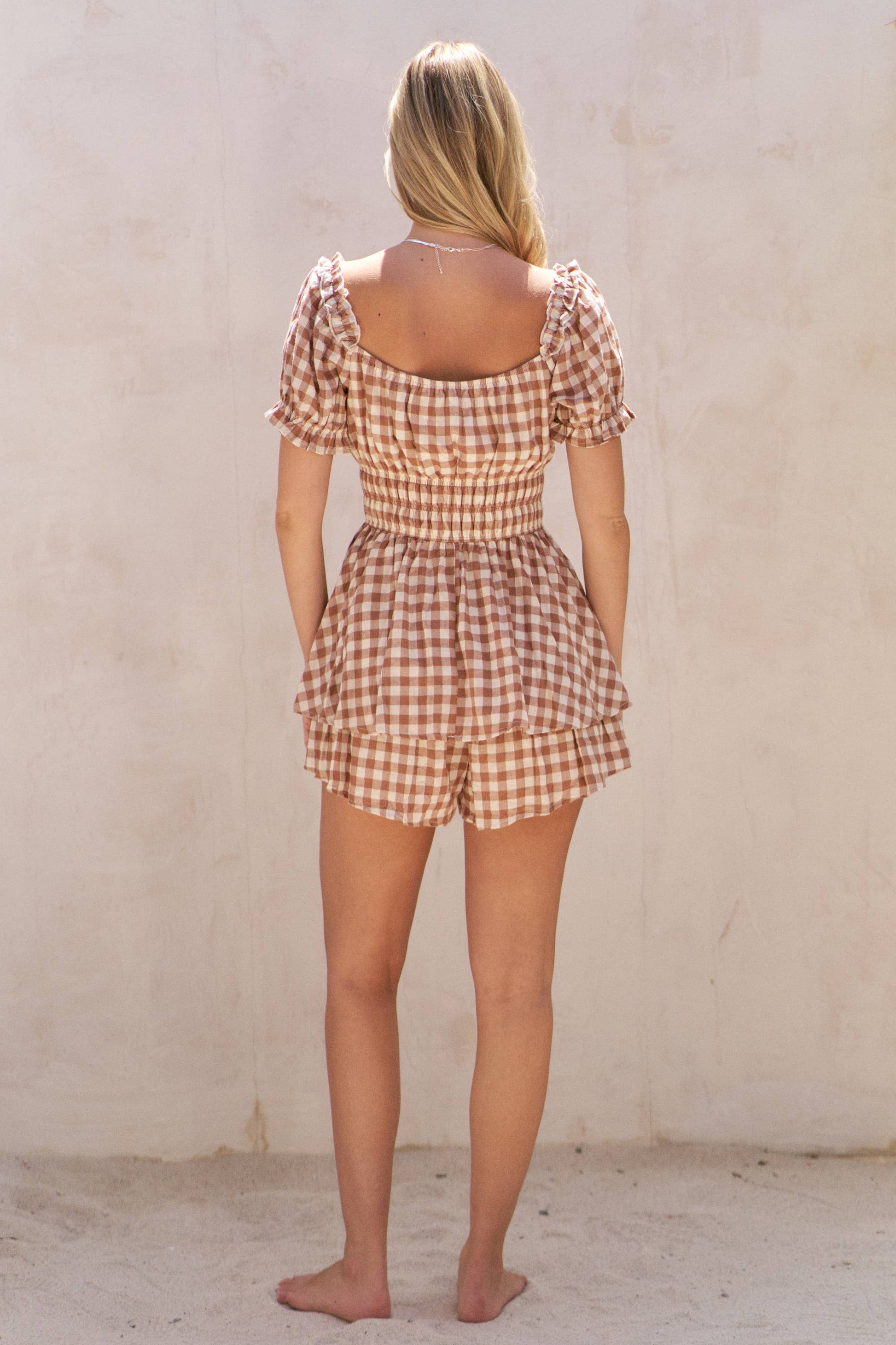 GINGHAM PRINT PUFF SLEEVE ROMPER