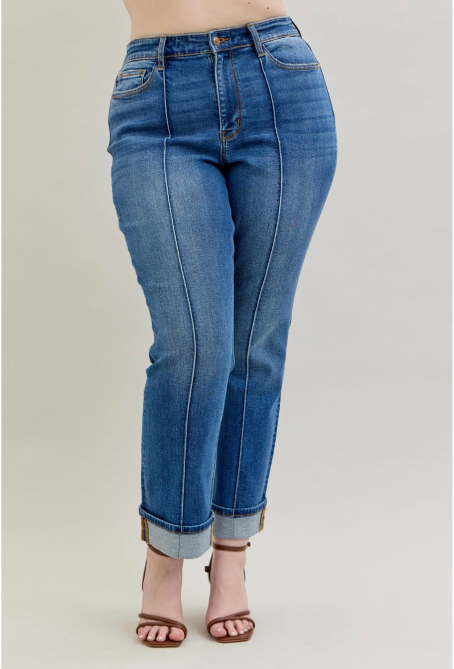 Judy Blue High Waisted Cuffed Straight Leg Jeans(Plus)